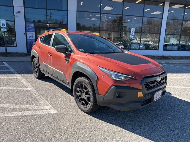 Certified. Sun Blaze Pearl 2025 Subaru Crosstrek Wilderness AWD Lineartronic CVT 2.5L 4-Cylinder DOHC 16V Subaru Certified, Dual front impact airbags, Dual front side impact airbags, Emergency communication system, Exterior Parking Camera Rear, Front anti-roll bar, Fully automatic headlights, Heated Front Bucket Seats, Knee airbag, Low tire pressure warning, Occupant sensing airbag, Overhead airbag, Panic alarm, Radio: Subaru 11.6" Multimedia Plus System, Rear anti-roll bar, Remote keyless entry, Security system, Steering wheel mounted audio controls, Tachometer, Telescoping steering wheel, Tilt steering wheel, Turn signal indicator mirrors, Wilderness StarTex Upholstery.