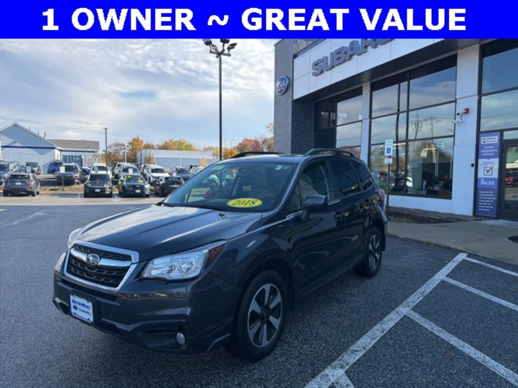 Dark Gray Metallic 2018 Subaru Forester 2.5i Limited AWD Lineartronic CVT 2.5L 4-Cylinder DOHC 16V VVT All Wheel Drive AWD, Automatic temperature control, Bumpers: body-color, CD player, Dual front impact airbags, Dual front side impact airbags, Emergency communication system: STARLINK, Front anti-roll bar, Front Center Armrest, Front fog lights, Fully automatic headlights, Heated door mirrors, Heated Front Bucket Seats, Heated front seats, Knee airbag, Low tire pressure warning, Occupant sensing airbag, Outside temperature display, Overhead airbag, Panic alarm, Power driver seat, Power Liftgate, Rear anti-roll bar, Rear window defroster, Remote keyless entry, Security system, Split folding rear seat, Steering wheel mounted audio controls, Tachometer, Telescoping steering wheel, Tilt steering wheel, Variably intermittent wipers, Wheels: 17" x 7.0J Black Machine Finish Alloy.