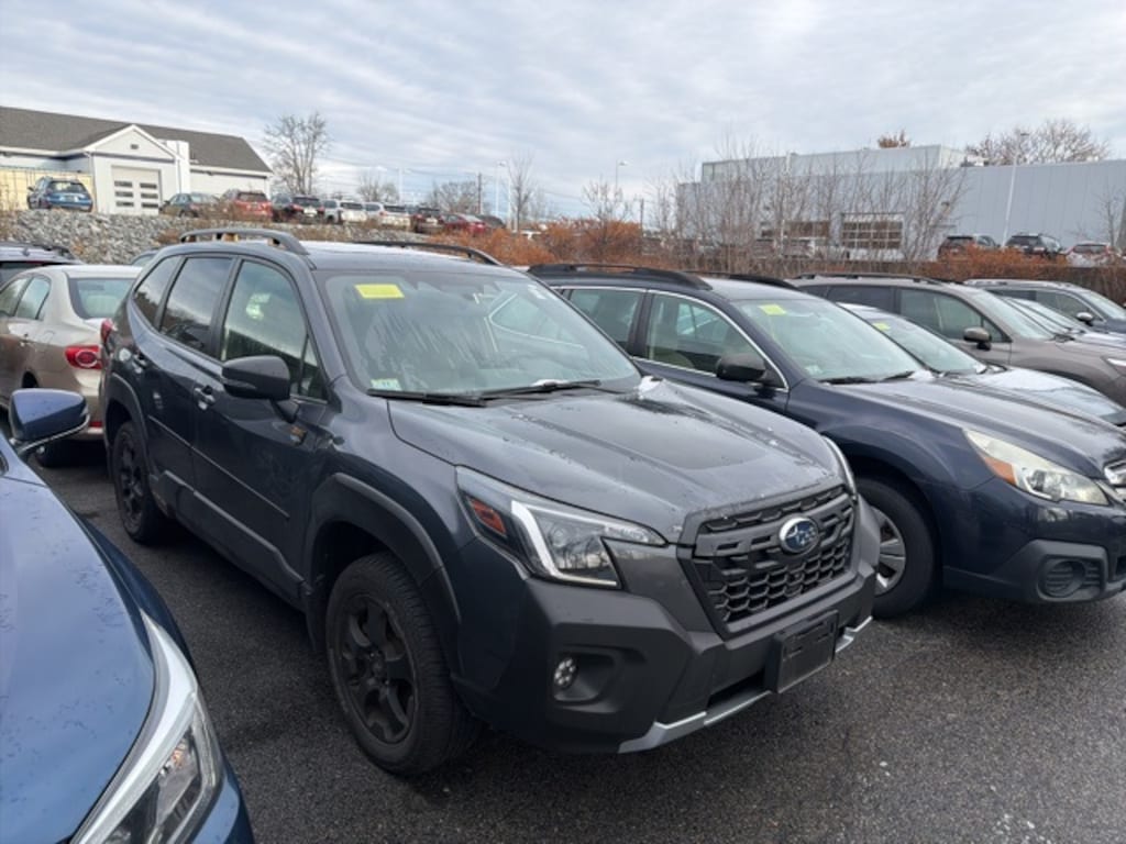 Magnetite Gray Metallic 2022 Subaru Forester Wilderness AWD Lineartronic CVT 2.5L 4-Cylinder DOHC 16V All Wheel Drive AWD, Apple CarPlay-Android Auto, ABS brakes, Anti-whiplash front head restraints, Audio System & Navigation & Power Rr Gate, Auto High-beam Headlights, Automatic temperature control, CD player, Dual front impact airbags, Dual front side impact airbags, Emergency communication system: STARLINK Safety and Security (Subscription Required), Exterior Parking Camera Rear, Front dual zone A/C, Front fog lights, harman/kardon 576W Amp & Speaker System, Heated Front Bucket Seats, Illuminated entry, Knee airbag, Leather Shift Knob, Low tire pressure warning, Navigation System, Occupant sensing airbag, Outside temperature display, Overhead console, Panic alarm, Power door mirrors, Power moonroof: Panoramic, Power Rear Gate, Radio: Subaru Starlink 8.0" Multimedia Nav System, Rear window wiper, Remote keyless entry, Roof rack: rails only, Security system, Split folding rear seat, Spoiler, Steering wheel mounted audio controls, Tachometer, Telescoping steering wheel, Textured StarTex Upholstery, Tilt steering wheel, Variably intermittent wipers, Wheels: 17" x 7.0J Matte Black Machine Finish Alloy.