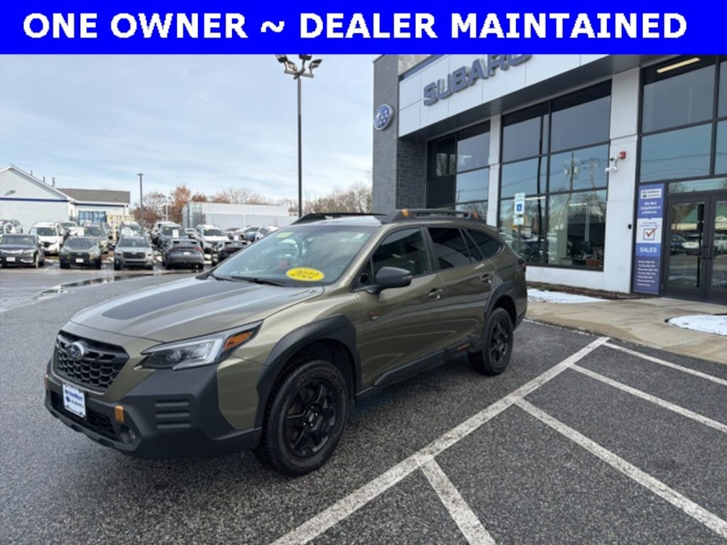 Autumn Green Metallic 2022 Subaru Outback Wilderness AWD CVT Lineartronic 2.4L DOHC Passes MA State Inspection, All Wheel Drive AWD, Apple CarPlay-Android Auto, Blind Spot Monitoring, Bluetooth, Bought, Serviced, and Traded In at MetroWest Subaru, Call for your Free CarFax Report, Clean CarFax No Accidents, Heated Front Seats, Heated Steering Wheel, Lane Assist, Leather Seats, Moonroof, Navigation, No Accidents, Non-Smoker, Rear Back Up Camera, Recent MetroWest Trade In, Service Records Available, 4-Wheel Disc Brakes, 6 Speakers, ABS brakes, Air Conditioning, AM/FM radio: SiriusXM, Auto High-beam Headlights, Automatic temperature control, Brake assist, Dual front impact airbags, Dual front side impact airbags, Electronic Stability Control, Emergency communication system: STARLINK Safety and Security (Subscription Required), Exterior Parking Camera Rear, Four wheel independent suspension, Front anti-roll bar, Front dual zone A/C, Front fog lights, Fully automatic headlights, Knee airbag, Low tire pressure warning, Occupant sensing airbag, Overhead airbag, Panic alarm, Power driver seat, Power Liftgate, Power Moonroof, Power Moonroof & Navigation & RAB, Power steering, Power windows, Radio: Subaru STARLINK 11.6" Multimedia Nav System, Rear anti-roll bar, Rear window defroster, Remote keyless entry, Reverse Automatic Braking (RAB) System, Security system, Speed-sensing steering, Steering wheel mounted audio controls, Traction control.