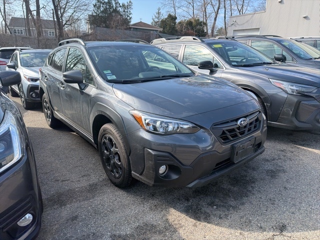 Magnetite Gray Metallic 2023 Subaru Crosstrek Sport AWD Lineartronic CVT 2.5L 4-Cylinder DOHC 16V Passes MA State Inspection, All Wheel Drive AWD, Apple CarPlay-Android Auto, Blind Spot Monitoring, Bluetooth, Bought, Serviced, and Traded In at MetroWest Subaru, Call for your Free CarFax Report, Clean CarFax No Accidents, Dealer Serviced, Heated Front Seats, Lane Assist, Moonroof, Navigation, No Accidents, Non-Smoker, Rear Back Up Camera, Recent MetroWest Trade In, 4-Wheel Disc Brakes, 6 Speakers, ABS brakes, Air Conditioning, AM/FM radio: SiriusXM, Anti-whiplash front head restraints, Automatic temperature control, Blind Spot Detection w/Rear Cross-Traffic Alert, Brake assist, CD player, Dual front impact airbags, Dual front side impact airbags, Electronic Stability Control, Emergency communication system: STARLINK Safety and Security (Subscription Required), Exterior Parking Camera Rear, Four wheel independent suspension, Front anti-roll bar, Front fog lights, Fully automatic headlights, Knee airbag, Low tire pressure warning, Moonroof & BSD w/RCTA & 8.0" Multimedia Plus Audio, Occupant sensing airbag, Overhead airbag, Panic alarm, Power Moonroof, Power steering, Power windows, Radio data system, Radio: Subaru STARLINK 6.5" Multimedia Plus System, Radio: Subaru STARLINK 8.0" Multimedia Plus System, Rear anti-roll bar, Rear window defroster, Remote keyless entry, Security system, Speed control, Speed-sensing steering, Steering wheel mounted audio controls, Traction control.