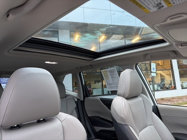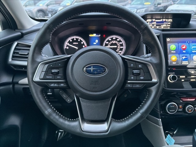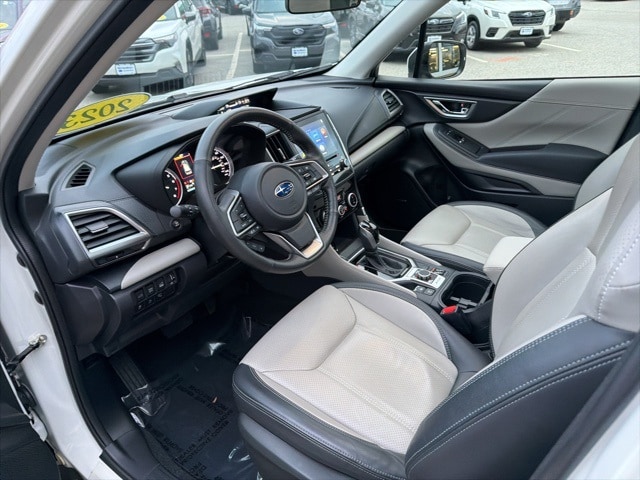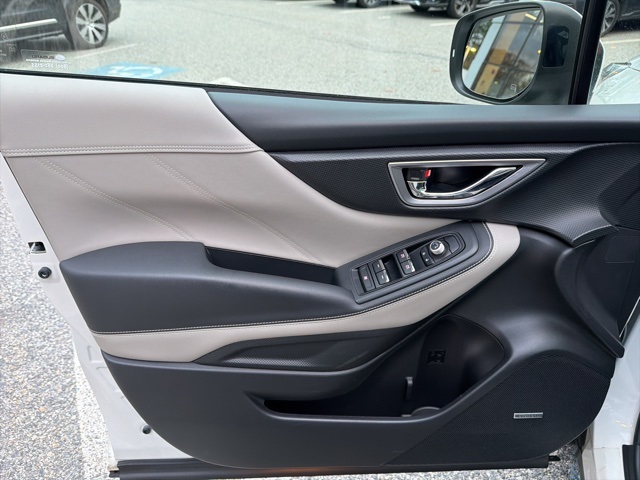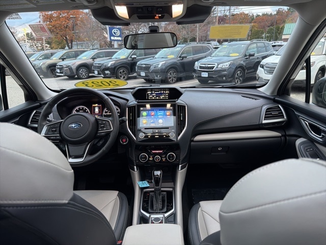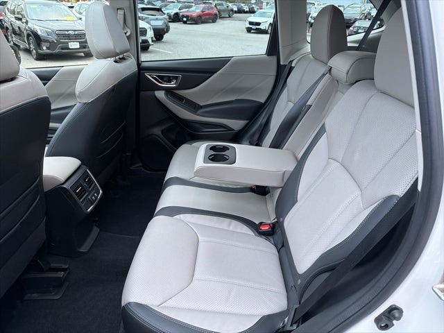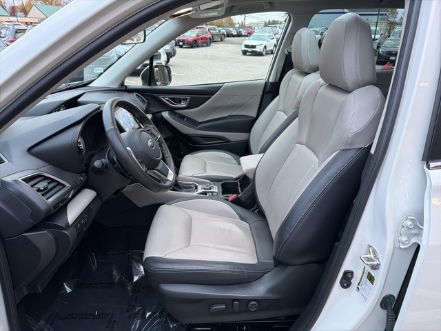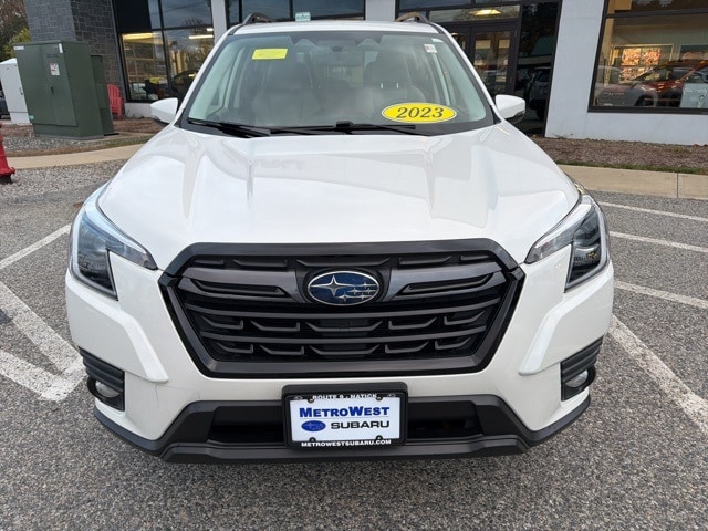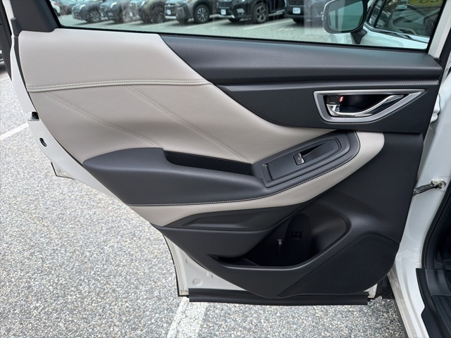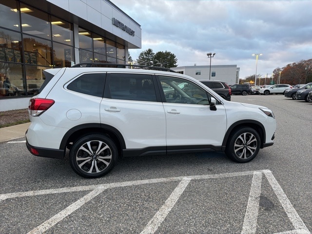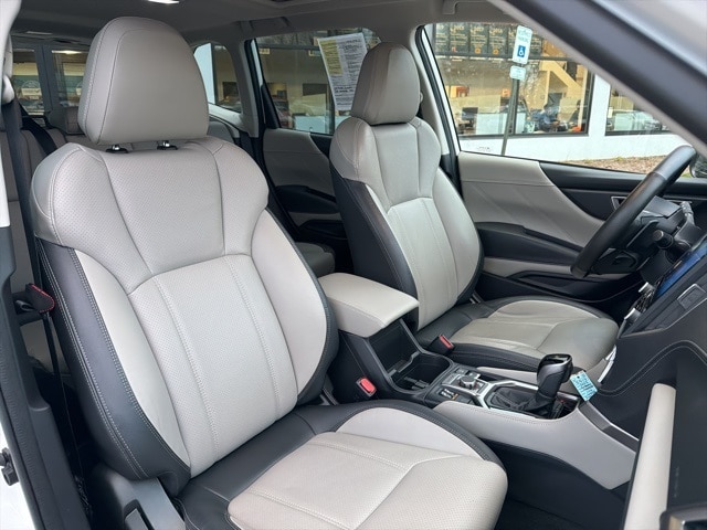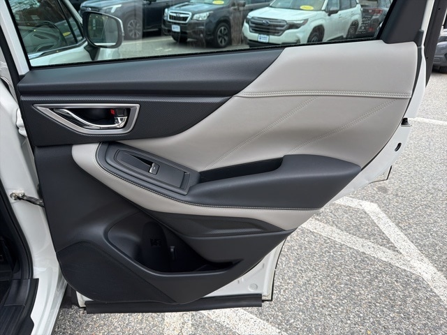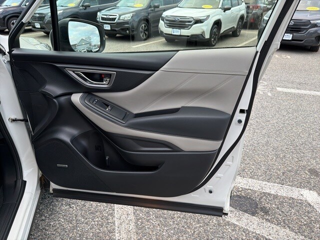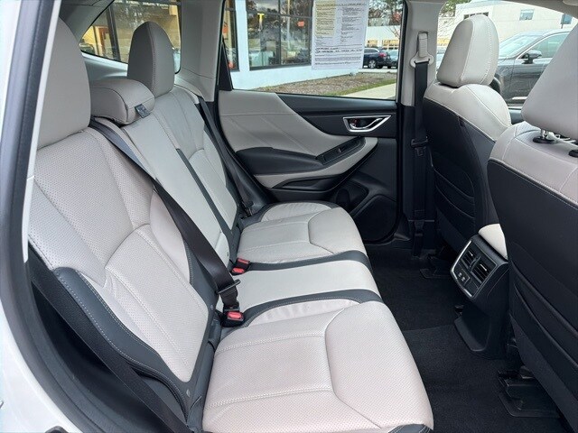 Crystal White Pearl 2023 Subaru Forester Limited AWD Lineartronic CVT 2.5L 4-Cylinder DOHC 16V All Wheel Drive AWD, Bluetooth, Heated Front Seats, Leather Seats, Limited, Moonroof, Automatic temperature control, Dual front impact airbags, Emergency communication system: STARLINK Safety and Security (Subscription Required), Exterior Parking Camera Rear, Front anti-roll bar, Front dual zone A/C, Front fog lights, Fully automatic headlights, Heated door mirrors, Heated Front Bucket Seats, Heated front seats, Knee airbag, Low tire pressure warning, Occupant sensing airbag, Outside temperature display, Overhead airbag, Overhead console, Panic alarm, Passenger vanity mirror, Power driver seat, Power Liftgate, Power moonroof: Panoramic, Radio: Subaru Starlink 8.0" Multimedia Plus System, Rear seat center armrest, Rear window wiper, Remote keyless entry, Security system, Steering wheel mounted audio controls, Tachometer, Telescoping steering wheel, Tilt steering wheel, Turn signal indicator mirrors, Variably intermittent wipers, Wheels: 18" x 7.0 J Black Machine Finish Alloy.