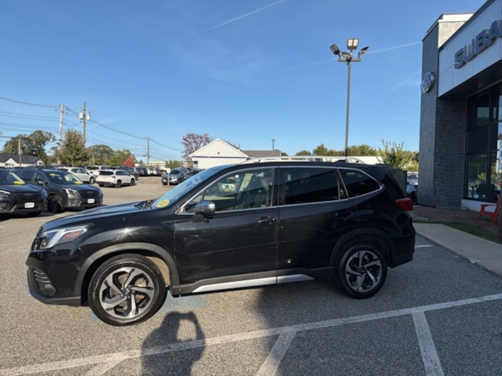 Crystal Black Silica 2023 Subaru Forester Touring AWD Lineartronic CVT 2.5L 4-Cylinder DOHC 16V Passes MA State Inspection, All Wheel Drive AWD, Apple CarPlay-Android Auto, Blind Spot Monitoring, Bluetooth, Bought, Serviced, and Traded In at MetroWest Subaru, Dealer Serviced, Heated Front Seats, Heated Steering Wheel, Lane Assist, Leather Seats, Moonroof, Navigation, No Accidents, Rear Back Up Camera, Recent MetroWest Trade In, Service Records Available, Subaru Eyesight System, 4-Wheel Disc Brakes, 9 Speakers, ABS brakes, Air Conditioning, AM/FM radio: SiriusXM, Anti-whiplash front head restraints, Auto High-beam Headlights, Automatic temperature control, Brake assist, CD player, Dual front impact airbags, Dual front side impact airbags, Electronic Stability Control, Emergency communication system: STARLINK Safety and Security (Subscription Required), Exterior Parking Camera Rear, Four wheel independent suspension, Front anti-roll bar, Front dual zone A/C, Front fog lights, Fully automatic headlights, harman/kardon 9-Speaker Audio System, harman/kardon® Speakers, HVAC memory, Knee airbag, Low tire pressure warning, Memory seat, Navigation System, Occupant sensing airbag, Overhead airbag, Panic alarm, Power driver seat, Power Liftgate, Power moonroof: Panoramic, Power steering, Power windows, Premium audio system: harman/kardon, Radio data system, Radio: Subaru Starlink 8.0" Multimedia Nav System, Rear anti-roll bar, Rear window defroster, Remote keyless entry, Security system, Speed control, Speed-sensing steering, Steering wheel mounted audio controls, Traction control.