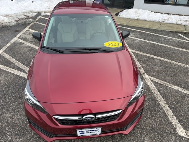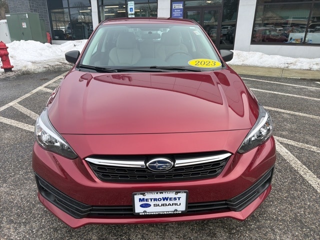 Crimson Red Pearl 2023 Subaru Impreza AWD CVT Lineartronic 2.0L DOHC Passes MA State Inspection, All Wheel Drive AWD, Bluetooth, Bought, Serviced, and Traded In at MetroWest Subaru, Call for your Free CarFax Report, Clean CarFax No Accidents, Recent MetroWest Trade In, 4 Speakers, 4-Wheel Disc Brakes, ABS brakes, Air Conditioning, AM/FM radio, Anti-whiplash front head restraints, Brake assist, Dual front impact airbags, Dual front side impact airbags, Electronic Stability Control, Exterior Parking Camera Rear, Four wheel independent suspension, Front anti-roll bar, Knee airbag, Low tire pressure warning, Occupant sensing airbag, Overhead airbag, Panic alarm, Power steering, Power windows, Radio data system, Radio: Subaru STARLINK 6.5" Multimedia System, Rear window defroster, Remote keyless entry, Security system, Speed control, Speed-sensing steering, Steering wheel mounted audio controls, Traction control.