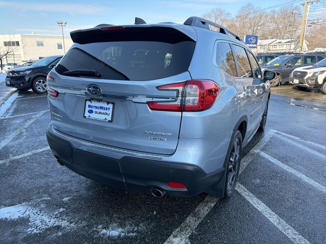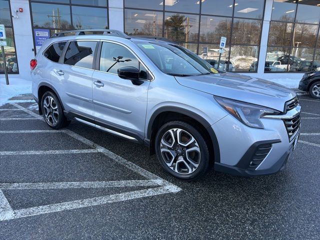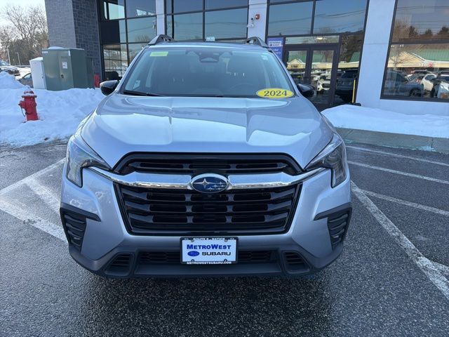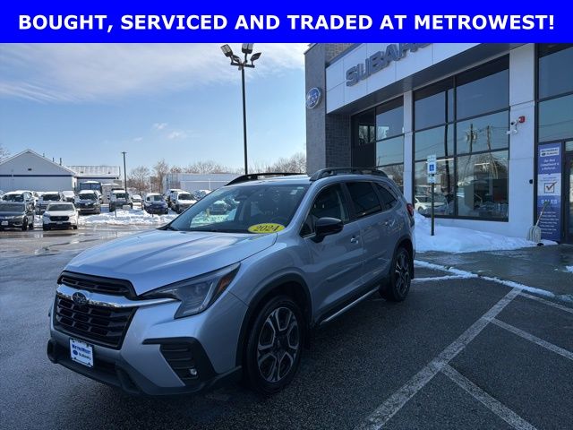 Ice Silver Metallic 2024 Subaru Ascent Limited AWD Lineartronic CVT 2.4L 4-Cylinder DOHC 16V Passes MA State Inspection, All Wheel Drive AWD, Apple CarPlay-Android Auto, Blind Spot Monitoring, Bluetooth, Bought, Serviced, and Traded In at MetroWest Subaru, Call for your Free CarFax Report, Clean CarFax No Accidents, Dealer Serviced, Heated Front Seats, Heated Steering Wheel, Lane Assist, Leather Seats, Moonroof, Navigation, New Tires, No Accidents, Non-Smoker, One Owner Clean CarFax, Rear Back Up Camera, Recent MetroWest Trade In, Subaru Eyesight System, 4-Wheel Disc Brakes, 6 Speakers, ABS brakes, Air Conditioning, AM/FM radio: SiriusXM, Auto High-beam Headlights, Automatic temperature control, Brake assist, Cabin Connect, Crystal Black Power-Folding Exterior Power Mirrors, Delay-off headlights, Dual front impact airbags, Dual front side impact airbags, Electronic Stability Control, Emergency communication system: STARLINK Safety and Security (Subscription Required), Exterior Parking Camera Rear, Four wheel independent suspension, Front anti-roll bar, Front dual zone A/C, Front fog lights, Fully automatic headlights, HVAC memory, Knee airbag, Low tire pressure warning, Memory seat, Occupant sensing airbag, Overhead airbag, Panic alarm, Panoramic Power Moonroof w/UV/Drk Tint Dual Glass, Power driver seat, Power Liftgate, Power steering, Power windows, Radio data system, Radio: Subaru STARLINK 11.6" Multimedia Nav System, Rear air conditioning, Rear anti-roll bar, Rear window defroster, Remote keyless entry, Retractable Cargo Area Cover, Security system, Speed control, Speed-sensing steering, Steering wheel mounted audio controls, Surround View Monitor System, Technology Package, Traction control.