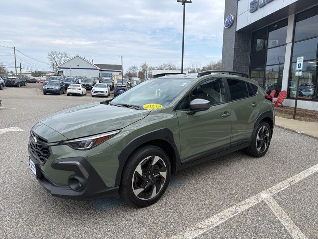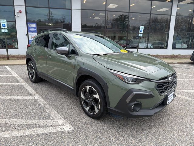 New Price! Alpine Green 2024 Subaru Crosstrek Limited AWD Lineartronic CVT 2.5L 4-Cylinder DOHC 16V All Wheel Drive AWD, Apple CarPlay-Android Auto, Blind Spot Monitoring, 6 Speakers, Alloy wheels, AM/FM radio: SiriusXM, Dual front impact airbags, Dual front side impact airbags, Emergency communication system: STARLINK Safety and Security (Subscription Required), Front anti-roll bar, Front fog lights, Fully automatic headlights, harman/kardon Audio & Power Moonroof, harman/kardon Surround Sound Speaker System, Heated Front Bucket Seats, Heated front seats, Knee airbag, Leather-Trimmed Upholstery, Low tire pressure warning, Occupant sensing airbag, Overhead airbag, Panic alarm, Power Moonroof, Radio data system, Rear window wiper, Remote keyless entry, Security system, Split folding rear seat, Steering wheel mounted audio controls, Telescoping steering wheel, Tilt steering wheel, Wheels: 18" x 7.0J Dark Gray Aluminum Alloy.