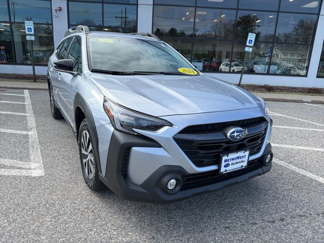 Ice Silver Metallic 2024 Subaru Outback Premium AWD CVT Lineartronic 2.5L 4-Cylinder DOHC 16V All Wheel Drive AWD, Apple CarPlay-Android Auto, Blind Spot Detection (BSD), BSD w/RCTA & Keyless Access & Push Button Start, Dual front side impact airbags, Emergency communication system: STARLINK Safety Plus (3-year free trial), Front dual zone A/C, Fully automatic headlights, Hands-Free Power Rear Gate, Heated Front Bucket Seats, Keyless Access w/Push Button Start, Knee airbag, Low tire pressure warning, Occupant sensing airbag, Overhead airbag, Panic alarm, Radio: Subaru STARLINK 11.6" Multimedia Plus Sys, Rear Cross Traffic Alert (RCTA), Remote keyless entry, Security system, Steering wheel mounted audio controls, Telescoping steering wheel, Tilt steering wheel, Wheels: 17" x 7J Black Aluminum-Alloy.