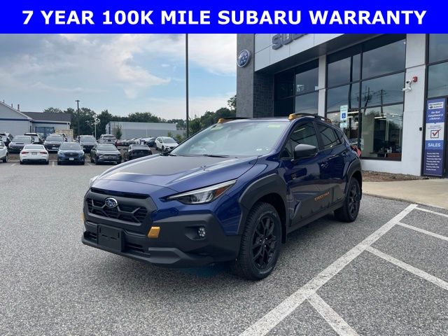 Clean CARFAX. Certified. Sapphire Blue Pearl 2025 Subaru Crosstrek Wilderness AWD Lineartronic CVT 2.5L 4-Cylinder DOHC 16V Subaru Certified, 10-Way Power Driver's Seat, Auto-Dimming Exterior Mirror w/Approach Light, Dual front impact airbags, Dual front side impact airbags, Emergency communication system, Front anti-roll bar, Fully automatic headlights, H/K Speaker System & Pwr Moonroof & Pwr Driver St, harman/kardon Surround Sound Speaker System, Knee airbag, Low tire pressure warning, Occupant sensing airbag, Overhead airbag, Power Moonroof, Rear anti-roll bar, Remote keyless entry, Steering wheel mounted audio controls, Turn signal indicator mirrors.