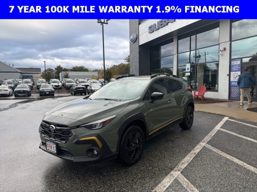 Clean CARFAX. Certified. Alpine Green 2025 Subaru Crosstrek Sport AWD Lineartronic CVT 2.5L 4-Cylinder DOHC 16V Subaru Certified, All Wheel Drive AWD, 10-Way Power Driver's Seat, Auto High-beam Headlights, Blind Spot Detection (BSD), BSD/RCTA & Power Driver Seat & Power Moonroof, Dual front impact airbags, Dual front side impact airbags, Emergency communication system, Exterior Parking Camera Rear, Front anti-roll bar, Front Center Armrest, Front fog lights, Heated Front Bucket Seats, Knee airbag, Low tire pressure warning, Occupant sensing airbag, Overhead airbag, Panic alarm, Power Moonroof, Radio data system, Radio: Subaru 11.6" Multimedia Plus System, Rear anti-roll bar, Rear Cross-Traffic Alert (RCTA) System, Rear window wiper, Remote keyless entry, Security system, Telescoping steering wheel, Tilt steering wheel, Wheels: 18" x 7.0" J Dark Gray Aluminum-Alloy.