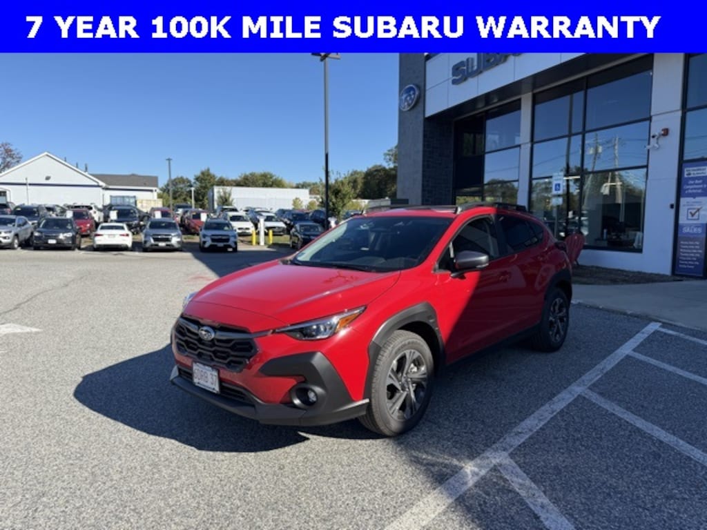 Clean CARFAX. Certified. Pure Red 2025 Subaru Crosstrek Premium AWD Lineartronic CVT 2.5L 4-Cylinder DOHC 16V Subaru Certified, All Wheel Drive AWD, Apple CarPlay-Android Auto, 10-Way Power Driver's Seat, All-Weather Package, AM/FM radio: SiriusXM, Anti-whiplash front head restraints, Auto High-beam Headlights, Blind Spot Detection (BSD), BSD/RCTA & All Wthr Pkg & Pwr Dr. Seat & Pwr Moonrf, Dual front impact airbags, Dual front side impact airbags, Dual-Mode Heated Front Seats, Emergency communication system, Front anti-roll bar, Front Bucket Seats, Front fog lights, Fully automatic headlights, Heated Power Exterior Mirrors, Knee airbag, Low tire pressure warning, Occupant sensing airbag, Overhead airbag, Panic alarm, Power Moonroof, Radio data system, Radio: Subaru 11.6" Multimedia Plus System, Rear Cross-Traffic Alert (RCTA) System, Rear window wiper, Remote keyless entry, Security system, Steering wheel mounted audio controls, Wheels: 17" x 7.0" J Machine Finish Aluminum-Alloy, Windshield De-Icer Wipers.