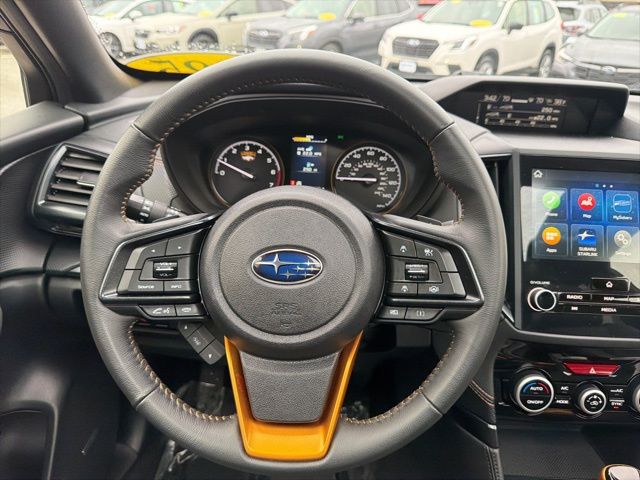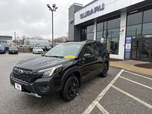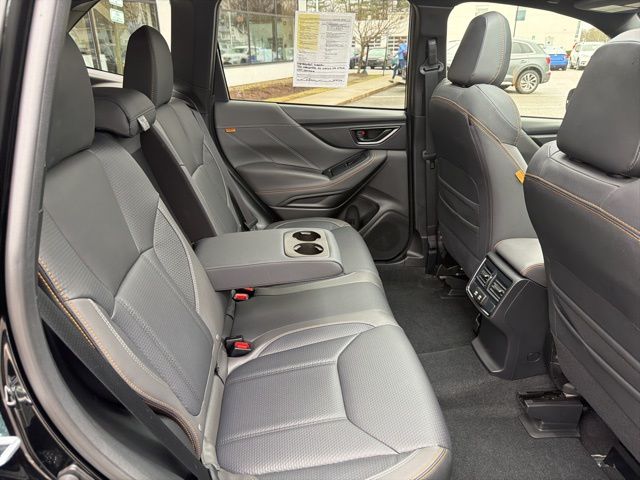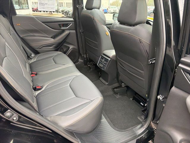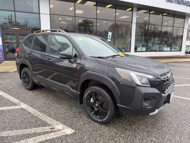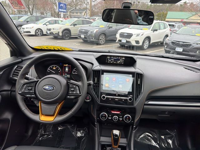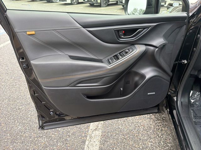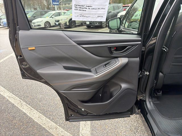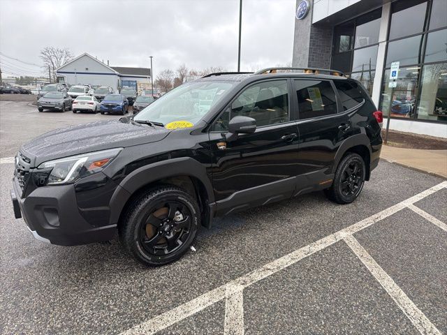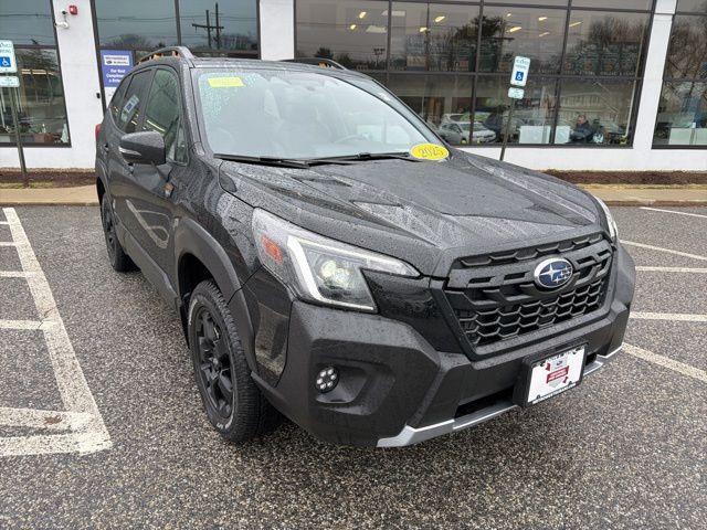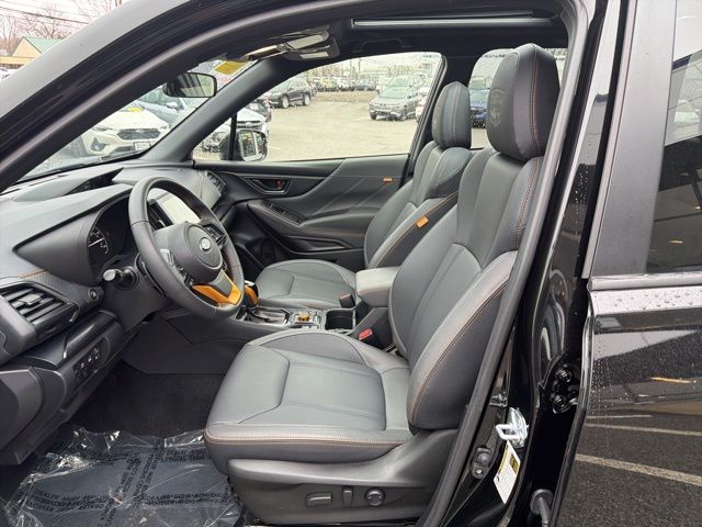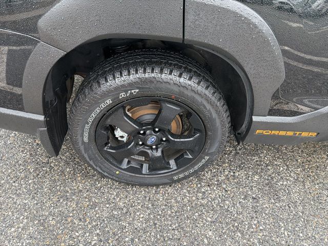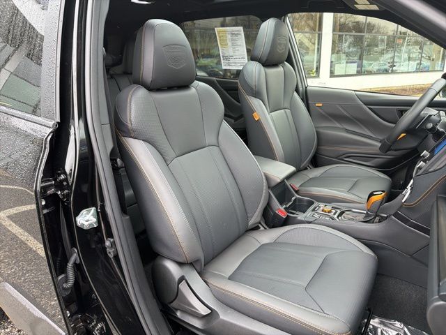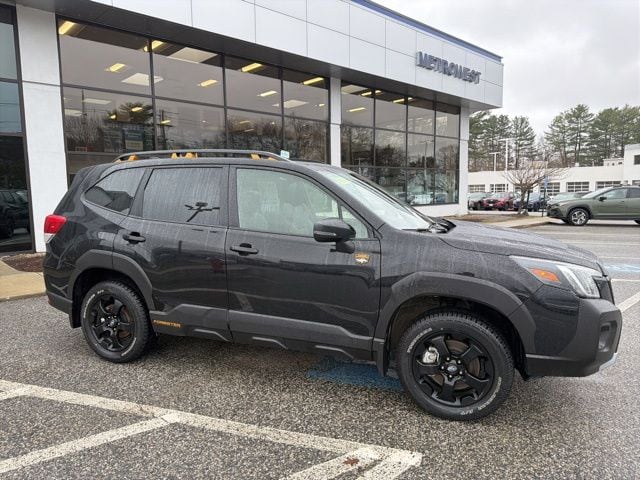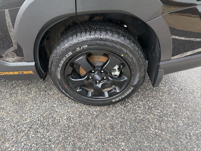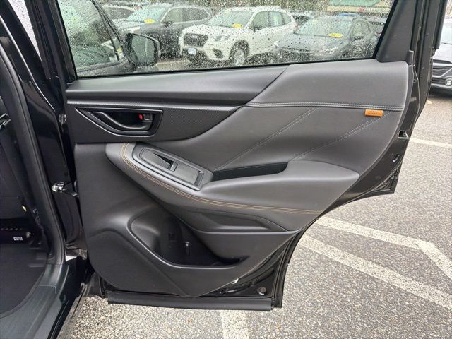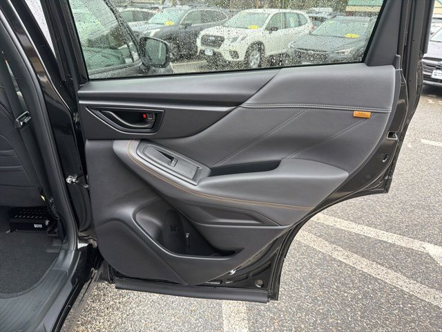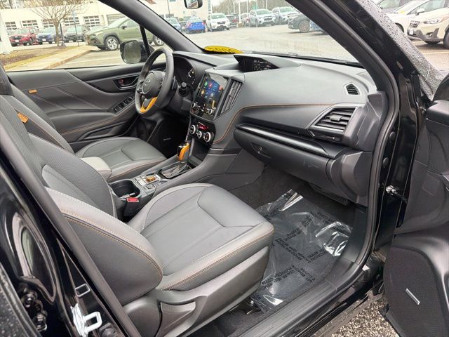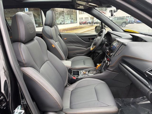 Certified. Crystal Black Silica 2025 Subaru Forester Wilderness AWD Lineartronic CVT 2.5L 4-Cylinder DOHC 16V Subaru Certified, All Wheel Drive AWD, Active Cruise Control, Air Conditioning, Auto High-beam Headlights, Automatic temperature control, Emergency communication system: MySubaru Safety (3-year free trial), Front anti-roll bar, Front fog lights, harman/kardon Audio & Power Rear Gate, Heated Front Bucket Seats, Knee airbag, Low tire pressure warning, Occupant sensing airbag, Overhead airbag, Panic alarm, Power driver seat, Power moonroof: Panoramic, Power Rear Gate, Radio: Subaru 8.0" Multimedia Navigation System, Radio: Subaru 8.0" Multimedia Plus System, Rear anti-roll bar, Rear window wiper, Remote keyless entry, Security system, Split folding rear seat, Textured StarTex Upholstery, Wheels: 17" x 7.0 J Matte Black Finish Alum-Alloy.